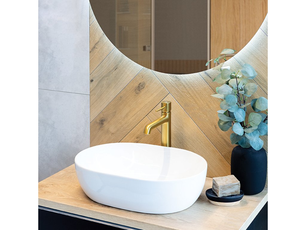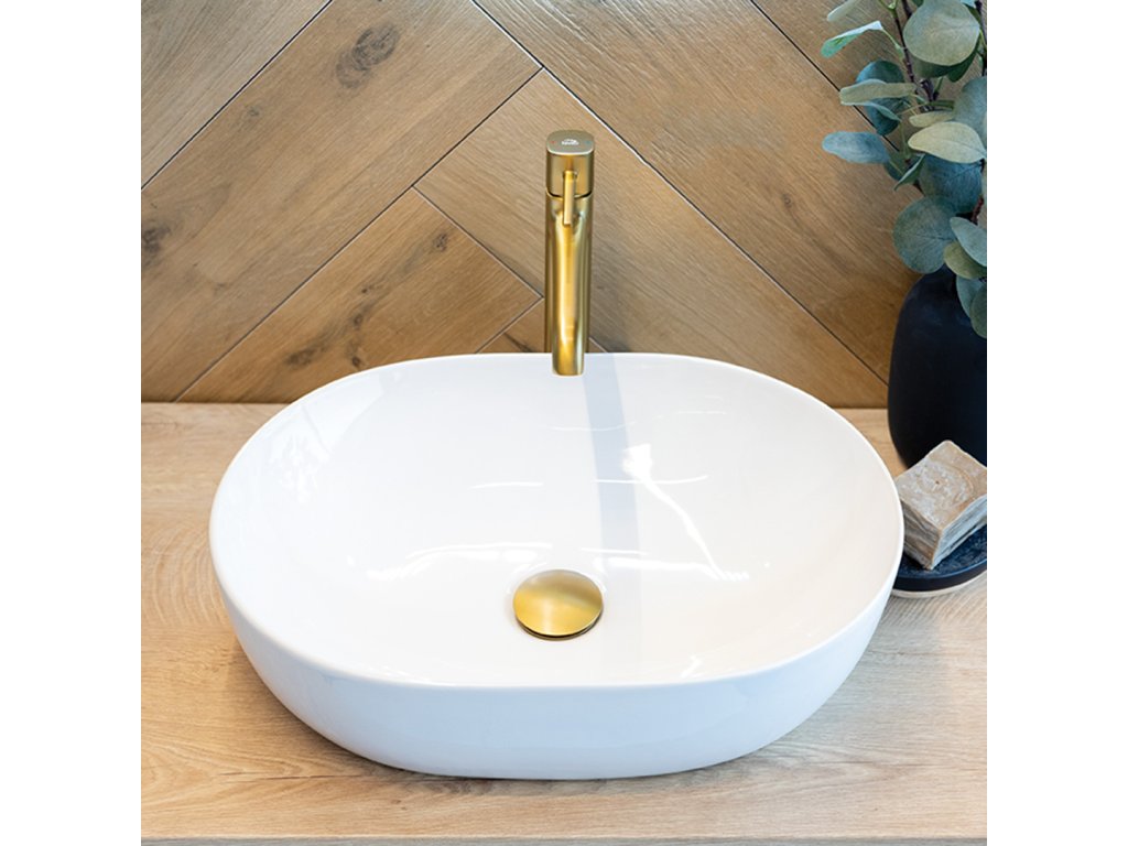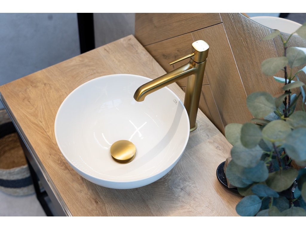 Pola - stojací umyvadlová baterie na desku kartáčované zlato