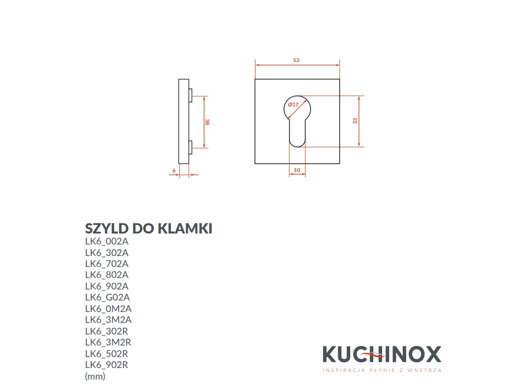 Čtvercové kování řady LK6 je k dispozici v provedení s klíčem, cylindrickou vložkou a WC.