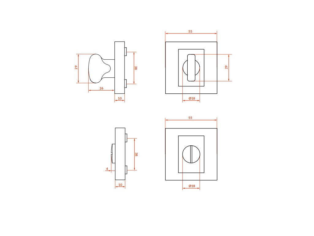 Čtvercové kování z řady LK5 zahrnuje modely s klíčem, cylindrickou vložkou a WC.