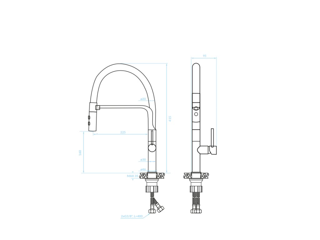 Vodovodní baterie nabízí dva režimy proudu vody – nepřetržitý a déšť. Přepínání mezi nimi se provádí pomocí praktického tlačítka. Nepřetržitý režim je ideální pro každodenní úkoly, zatímco režim deště je perfektní pro mytí většího nádobí nebo oplachování potravin. Díky tomu máte plnou kontrolu nad intenzitou proudu a můžete ji přizpůsobit svým potřebám.