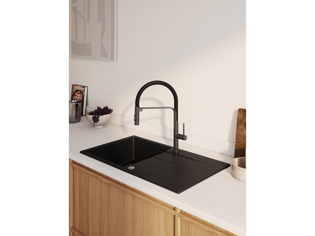 Řada kuchyňských baterií Siluetto v grafitové barvě je kombinací moderního designu, inovativní technologie a funkčnosti, která se dokonale hodí do současných kuchyní. Jeho stylový vzhled a snadné použití z něj činí ideální volbu pro ty, kteří si cení elegance a pohodlí při každodenním používání.