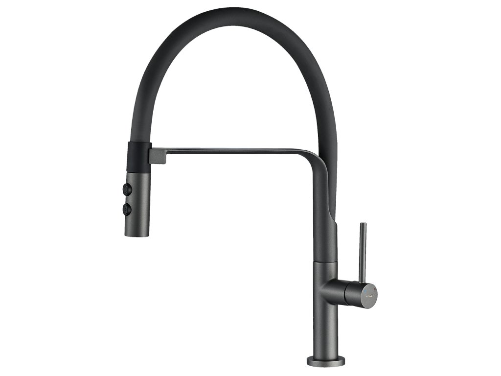 SILUETTO stojací dřezová baterie s U-výtokem grafitováSiluetto v grafitové barvě – elegance, funkčnost a úspora vody